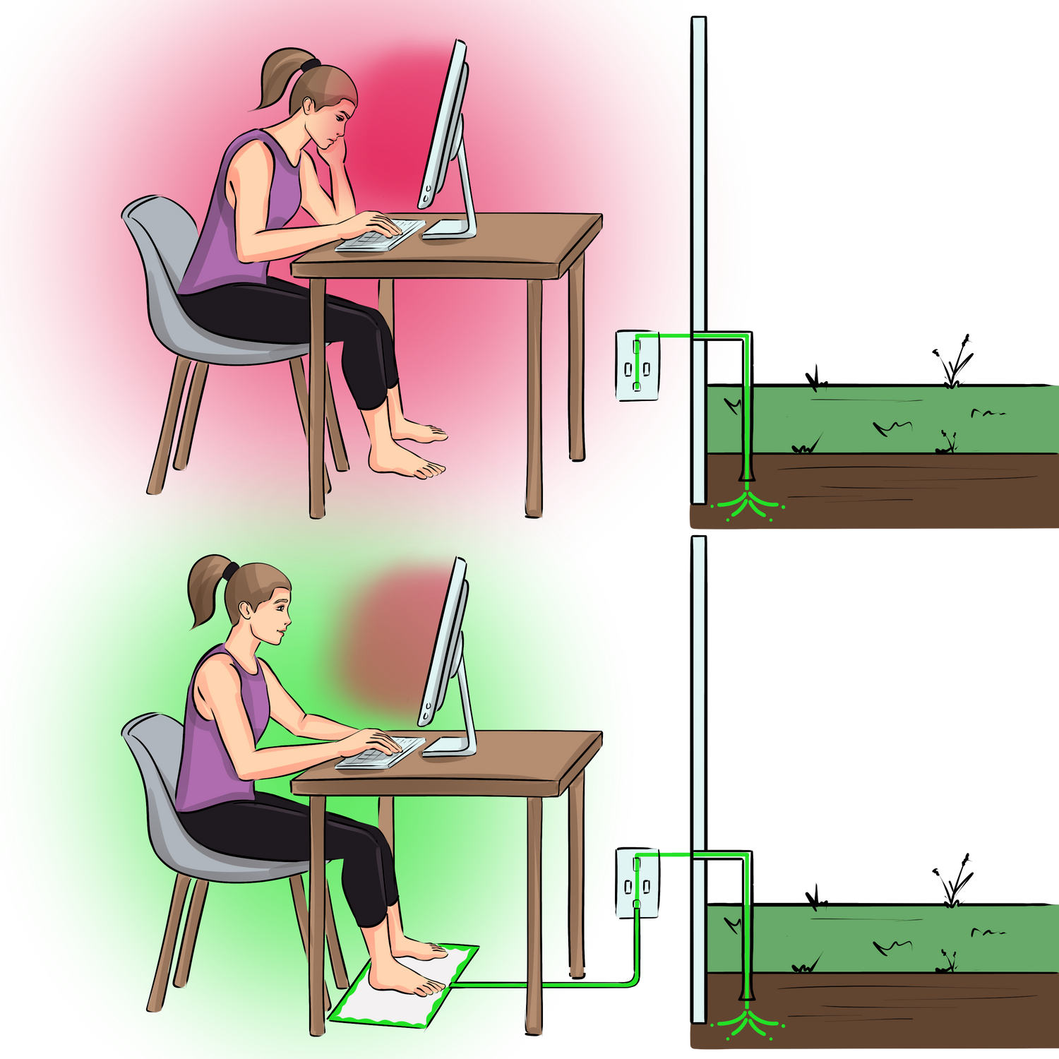 Este proceso de conexión a tierra elimina la electricidad sucia acumulada por el uso diario de dispositivos electrónicos. La esterilla GroundedEarth™ ofrece una solución segura y eficaz para reducir la ansiedad, mejorar el sueño y aliviar el dolor articular y muscular, entre otros beneficios.